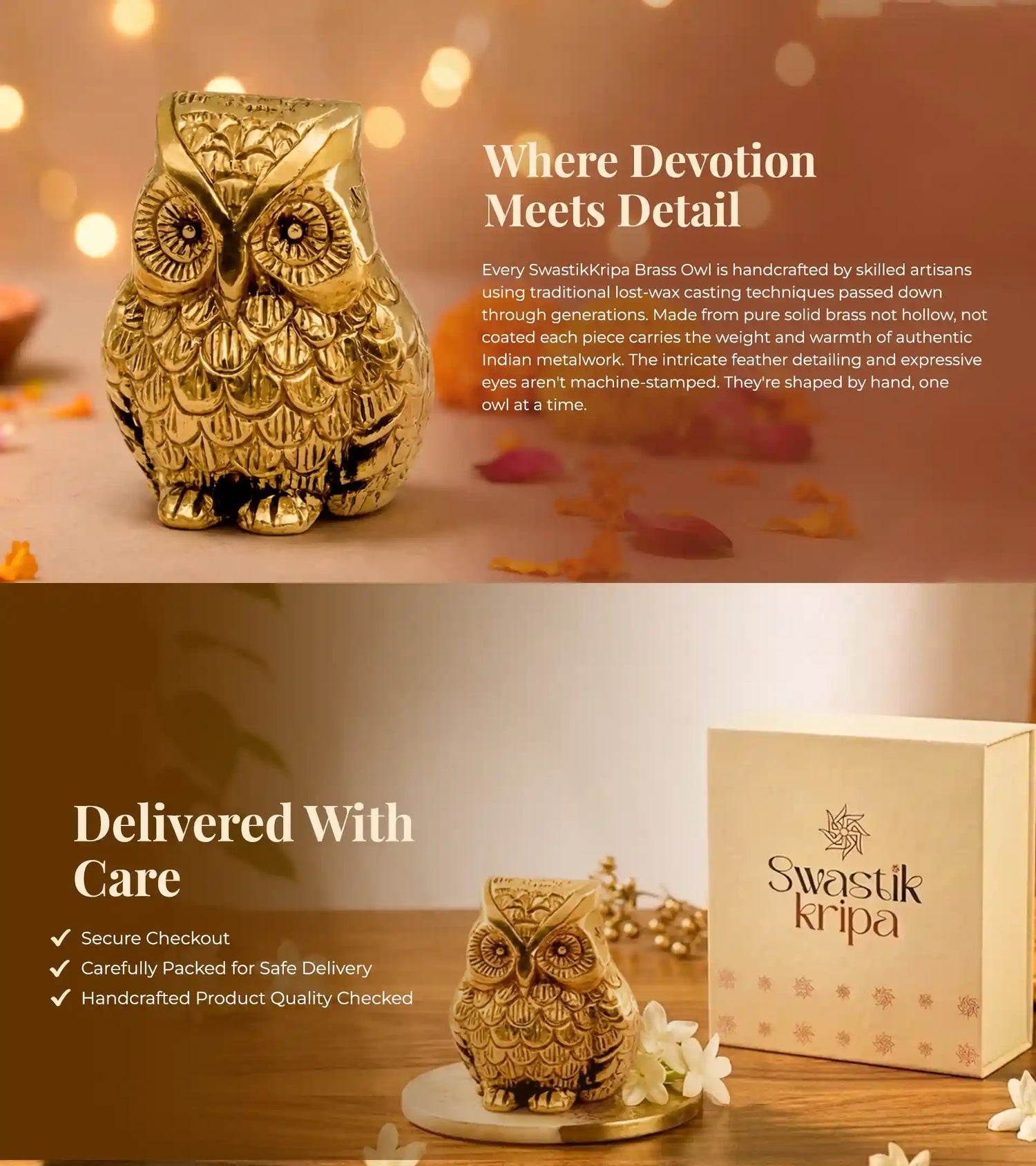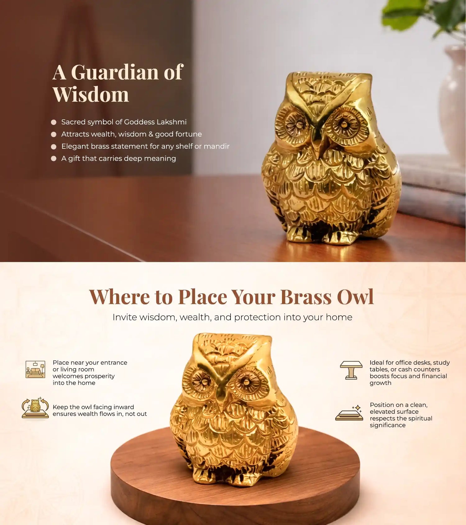 Finished in premium antique brass with a soft natural patina, this figurine adds warmth and sophistication to bookshelves, work desks, study rooms, or meditation corners. Revered across cultures as a guardian of knowledge and clarity, the owl is also considered auspicious in Vastu and Feng Shui practices.