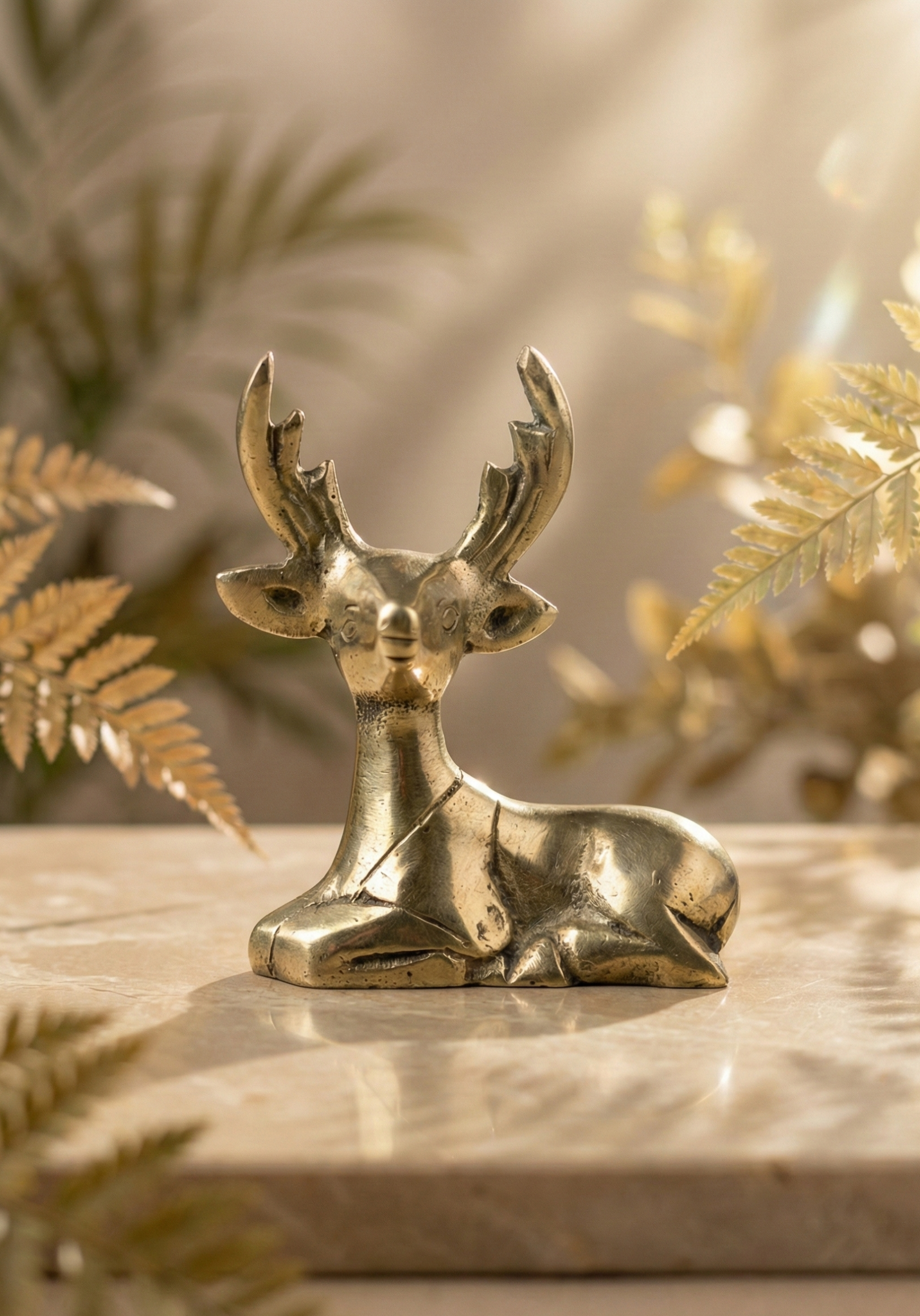 Deer Figurine – Pure Brass - Handcrafted Brass Deer for Home Decor